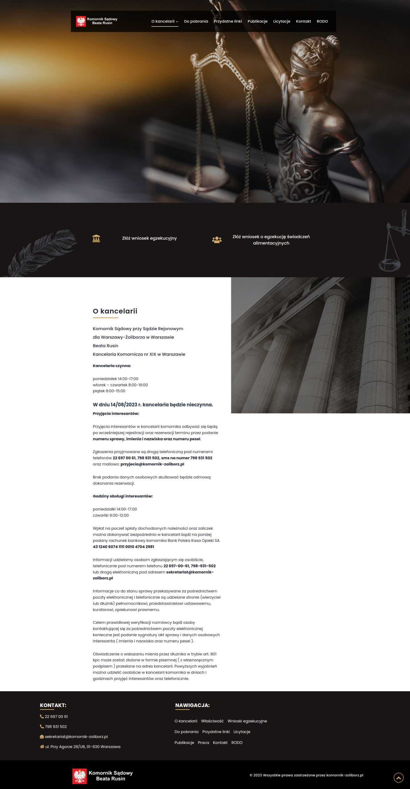 Projekt strony internetowej dla Komornika Sądowego Pani Beaty Rusin